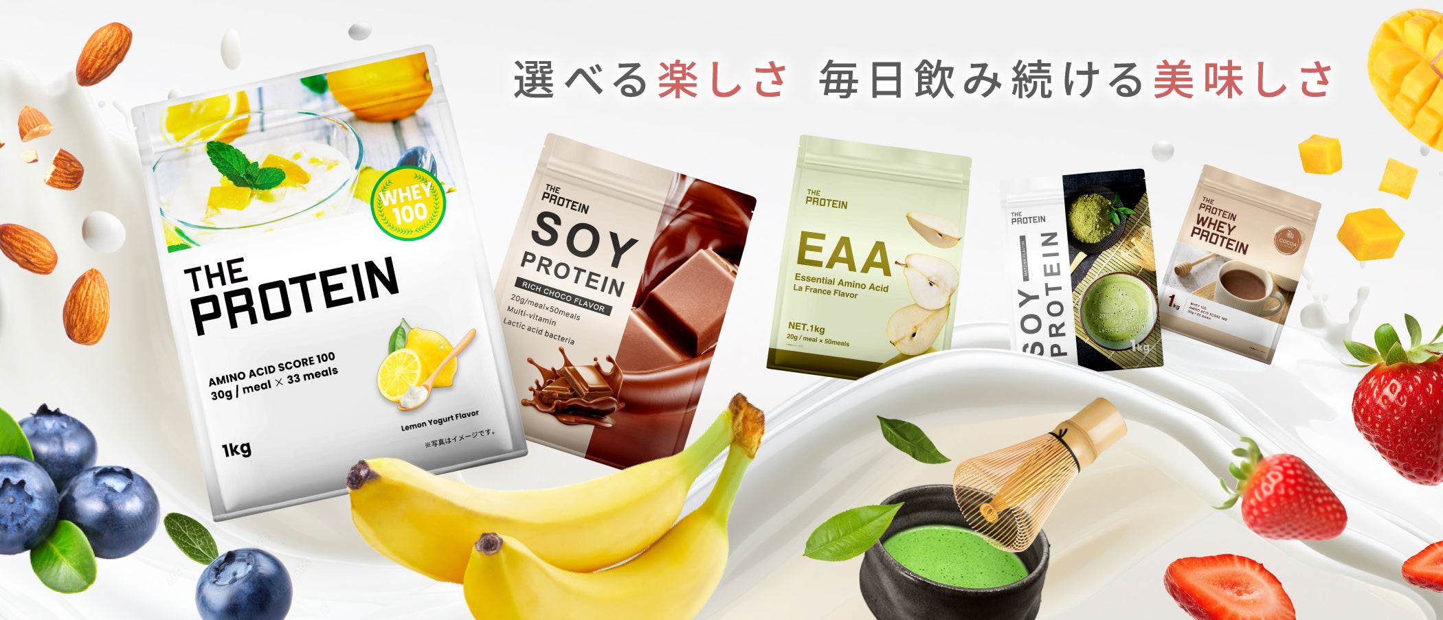 トレーニングを頑張るすべての方へ。 THE PROTEINのホエイプロテインシリーズは、毎日のタンパク質補給をおいしく続けられるよう、味・品質・価格にこだわった定番プロテインです。